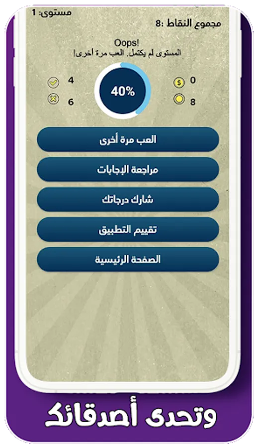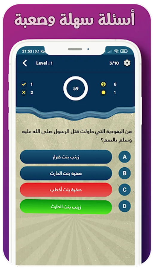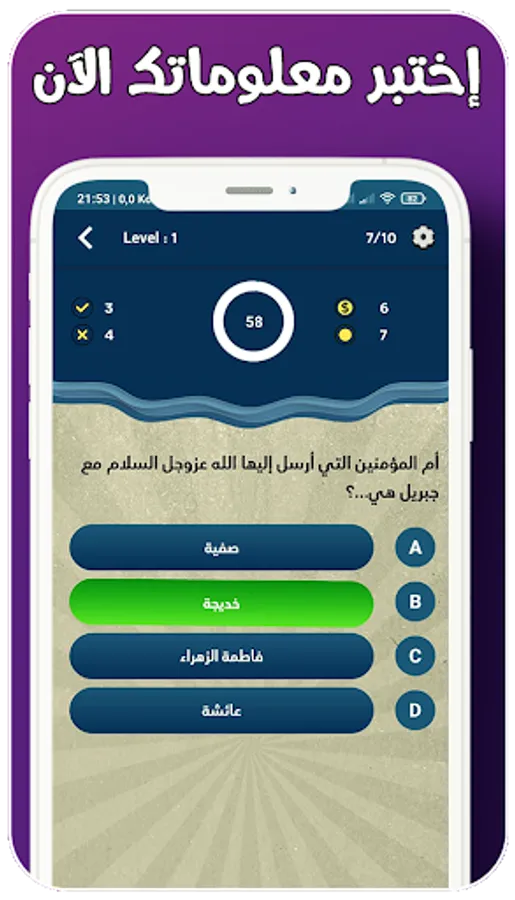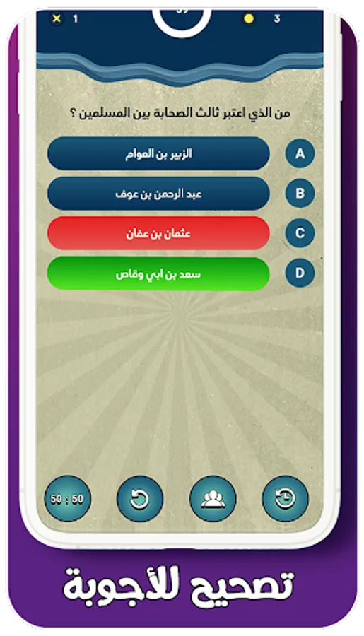 The questions and answers are divided into fifty stages. Each question has four answers that are displayed with it to answer. In order to achieve the scientific and religious interest, we present with each question additional information to shed light on the historical events.