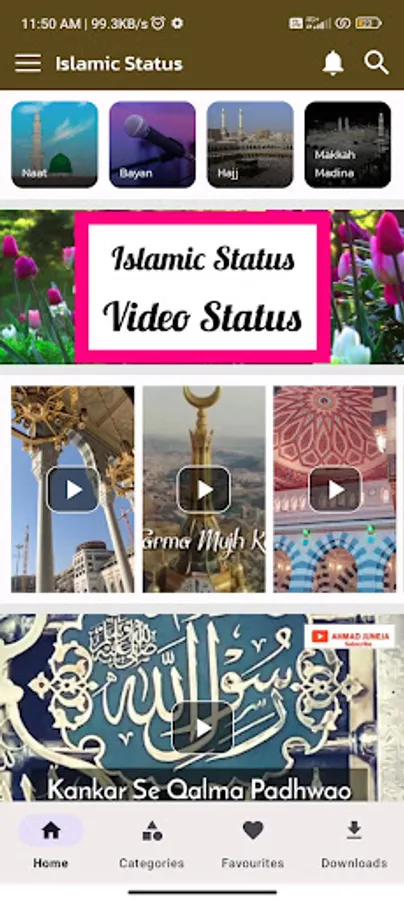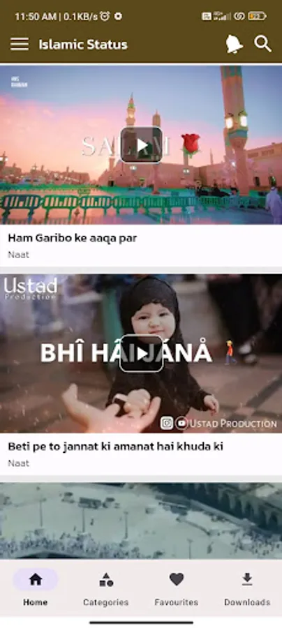 Islamic Video Status Short Videos Naat app provides a variety of short Islamic Videos, Naat Sharif Video Status, Ramadan Video Status, Ramzan Wishes, Jumma Mubarak Status, Eid Mubarak Wishes Status. In this Application, you can directly put video status on social media. you can easily download and share videos on social apps. one of the best apps for Islamic Status (Lyrical Videos).