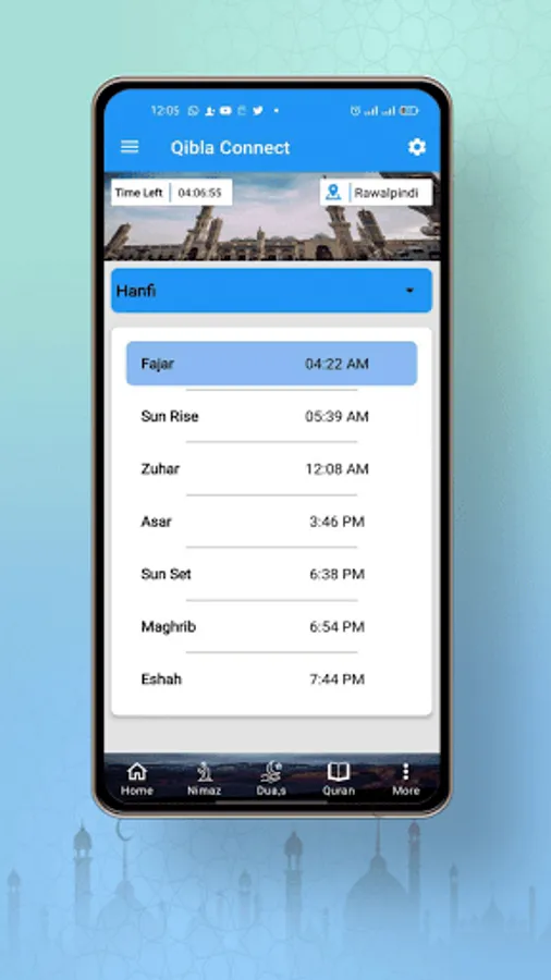 In Islamic world the time left for next prayers is also showing in the top and when specific time of the prayer is start app generate alarm and remembering you about Prayers Time
