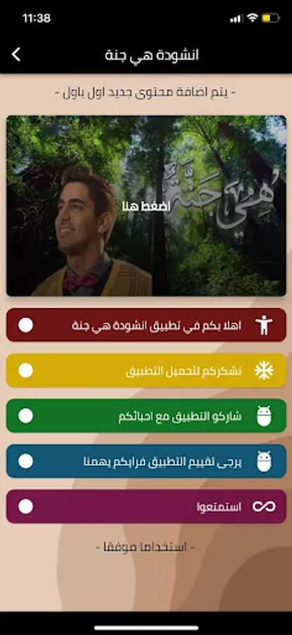 Which provides a chant that is a paradise with the finest and latest methods used in the design of the chant is a paradise application, you have to dispense with searching for a chant that is a paradise abroad and enjoy listening to a chant that is a paradise with us, how lucky are you, we invite you to try the application