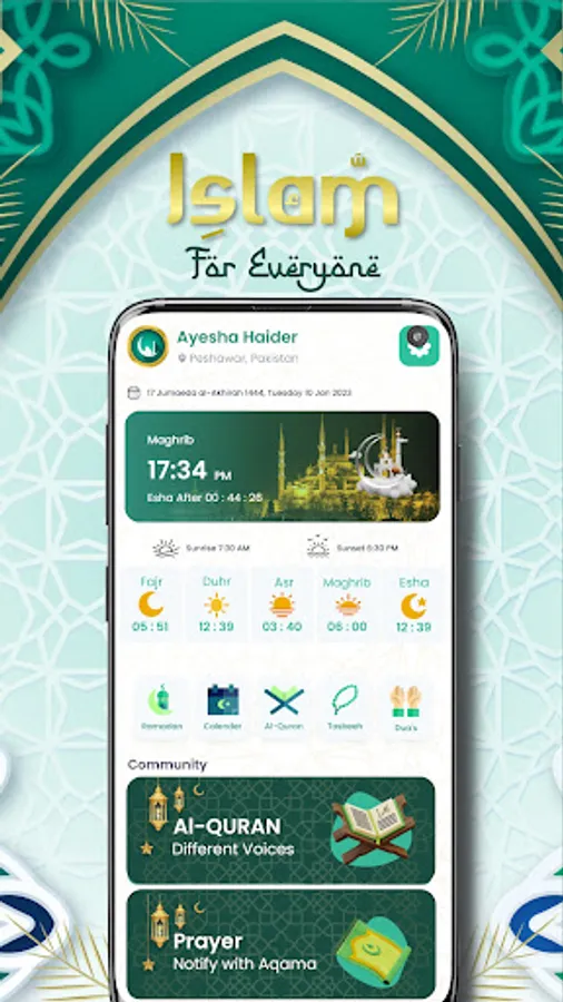 Genuine prayers timing across the globe using GPS, you will notify with Iqama, beautiful Adhaan voice and then near to prayer time notifications. Enjoy beautiful voices through listening. Islam now has all the necessary functions which a Muslims need in daily life.