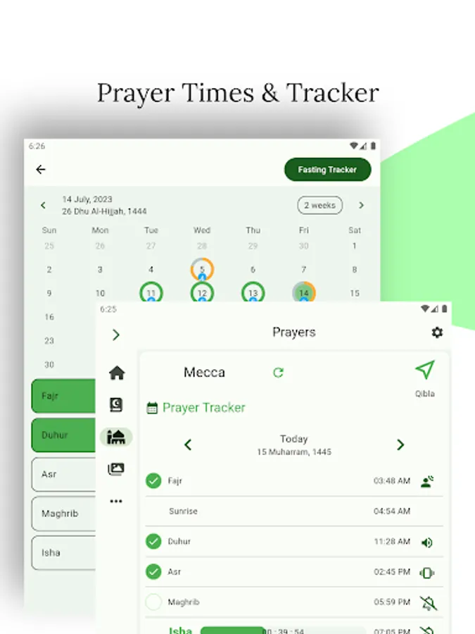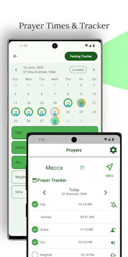 -Track your fasting during Ramadan and other voluntary fasts throughout the year.
