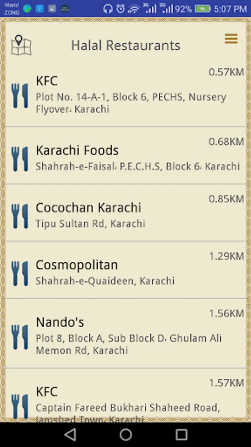 Halal restaurant application can also automatically detect the location of the user. After the search, there will be various Halal restaurants options that will pop up. Users can select any of the option to look for more details about the Halal restaurant. The salient details include restaurant name, location, contact information, working day, directions on map, and opening & closing timings.