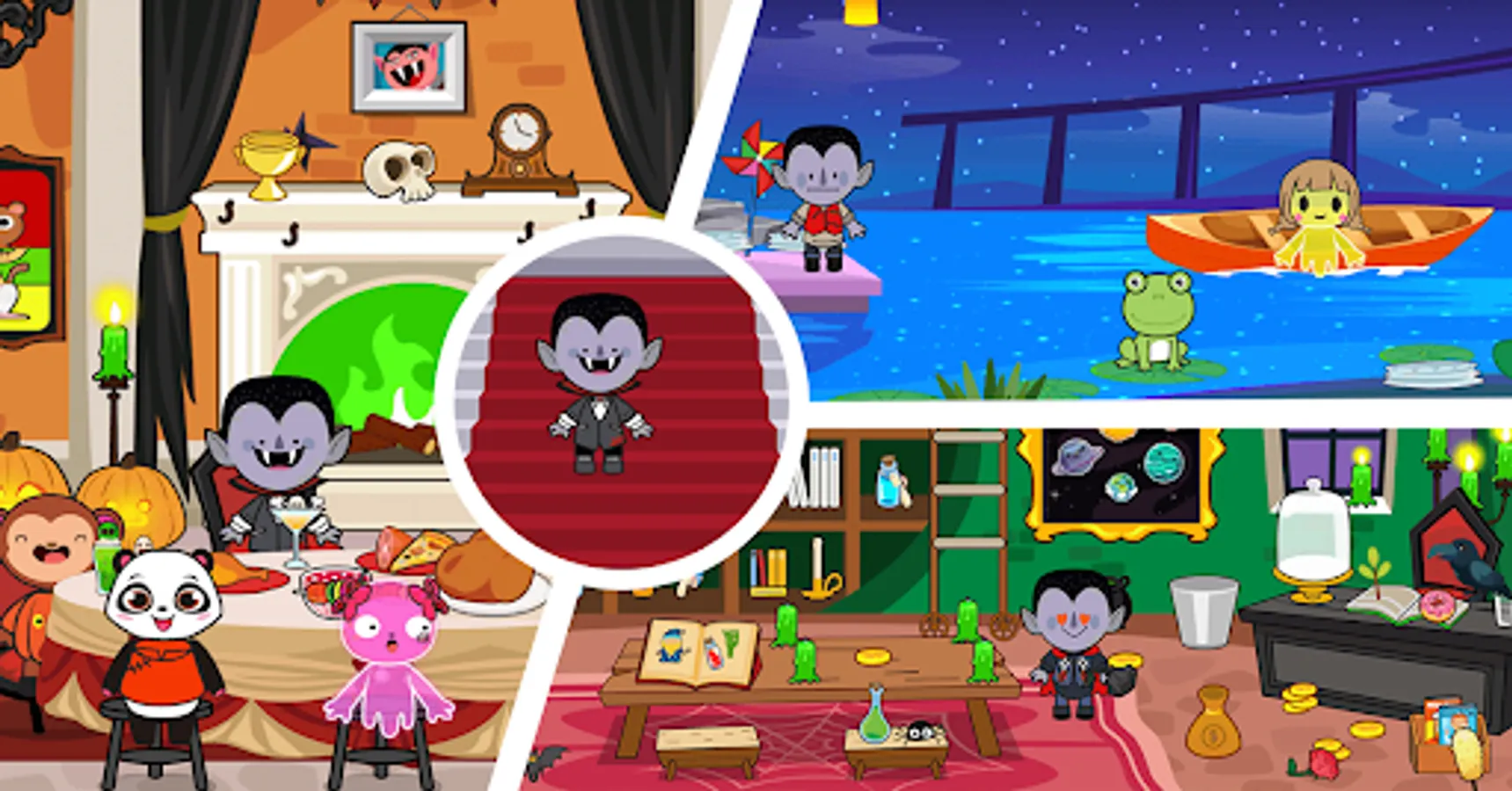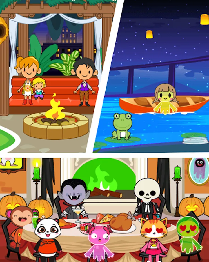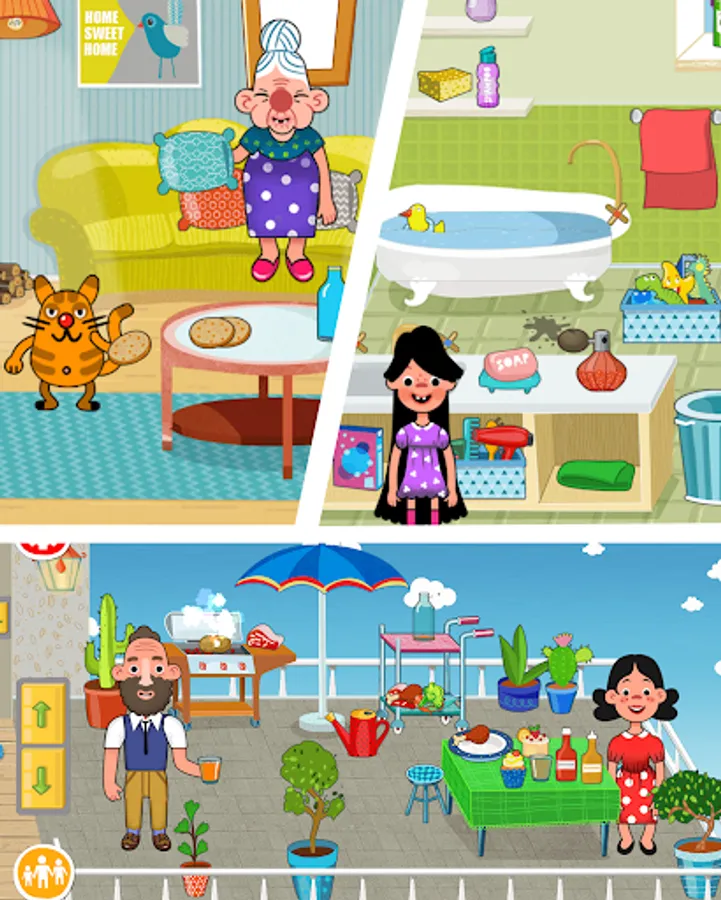 Here you can explore fantastic real world locations, design your family members, arrange them with various daily activities: cook dinners, play with sisters, take showers for bedtime stories and build unique stories.