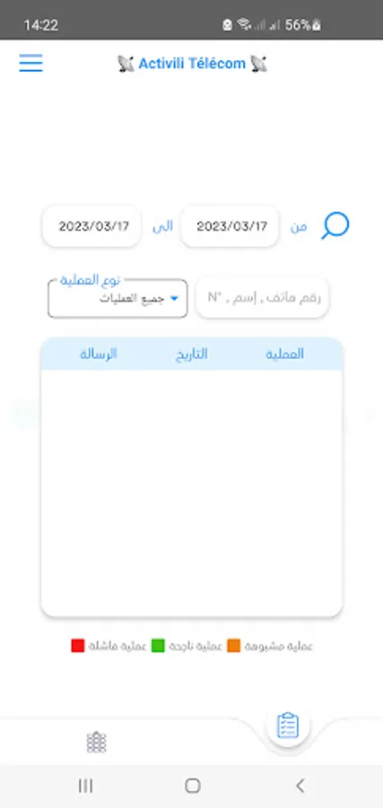 An interface with a customer's phone panel that contains all settings (normal balance charge, McTiva balance charge, invoice)