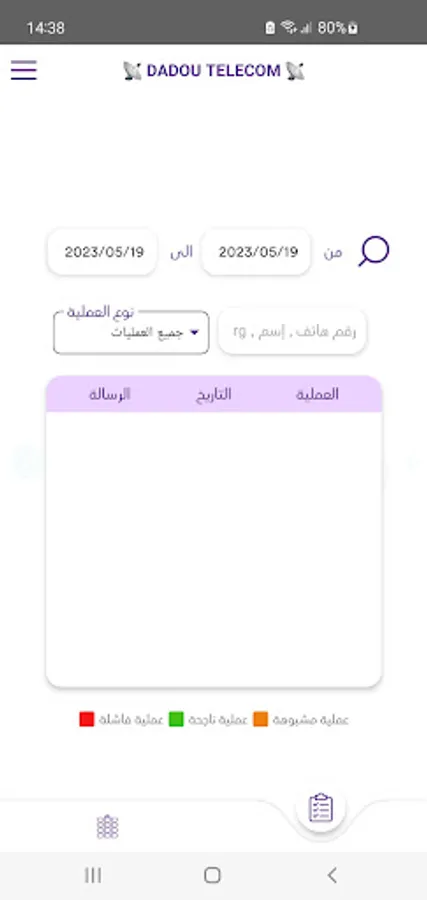 An interface with a customer's phone panel that contains all settings (normal balance charge, McTiva balance charge, invoice)