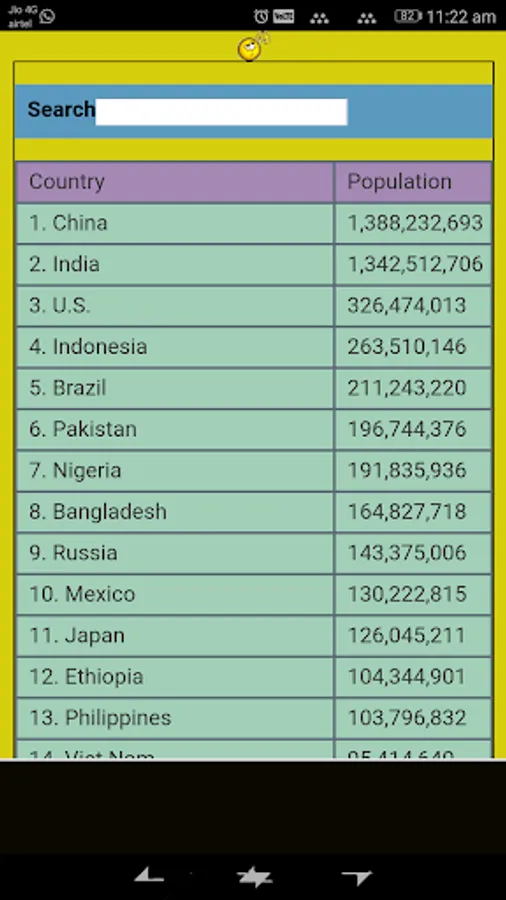 This app also have search feature and so that you can easily search desired country to know its population count.