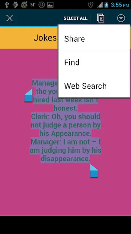 Note - If you like any Joke from this app you can simply tap on the text and you will get share options then you can share with your friends n family or even email it.