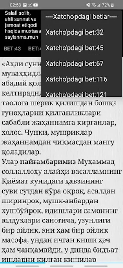 Мен Аллох йўлидаги дўстим шайх Абдуллох ибн Абдулхамид Оли Исмоилнинг нажот топувчи фирка, мададланган тоифа _ "Ахлуссунна вал-жамоа" эътикоди хакида ёзган "ал-Важиз фий акидатис-салафис-солих" (Салаф солих эътикоди хакида мухтасар сайланма) номли китобини ўкиб чикдим.