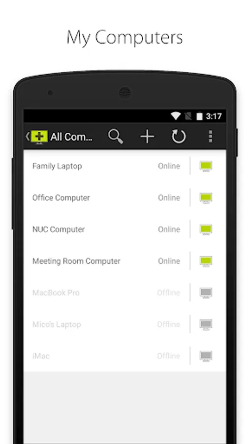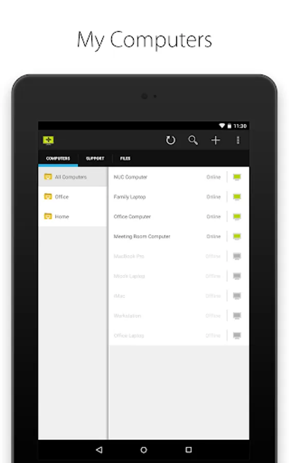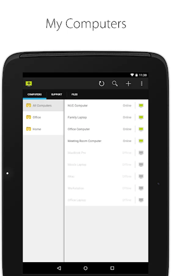 Connect to any Windows, Mac, or Linux computer to provide efficient technical assistance from your Android device. Access your computers even behind a firewall and control the keyboard and mouse remotely. Or vice-versa, connect to a remote Android mobile device* to see its screen and have full control of it from your computer running on Windows, Mac or Linux.