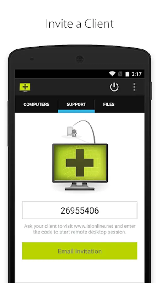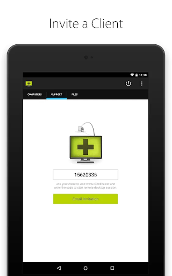 - Connect with your client by using a unique session code. To start a new session, you need a valid ISL Online account.