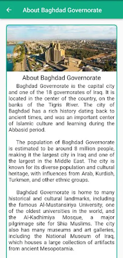 It's an app that aims to increase awareness and knowledge about Iraq's cultural and historical treasures. The app provides a comprehensive range of information and resources about significant archaeological sites in Iraq, ancient culture, and the rich history of Iraq.