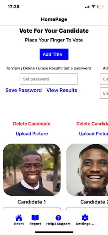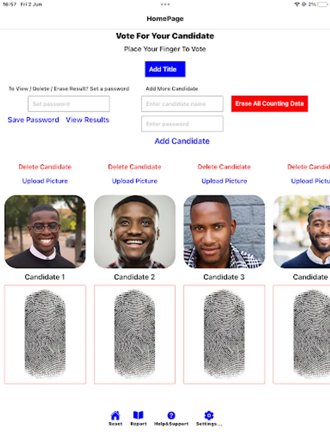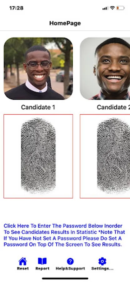 This App is an Electronic Voting Using Finger Thumbs. Password is set by the conductor and users are allowing to vote only. The Result can be seen if alert mode and statistic chat. well design and easy to used