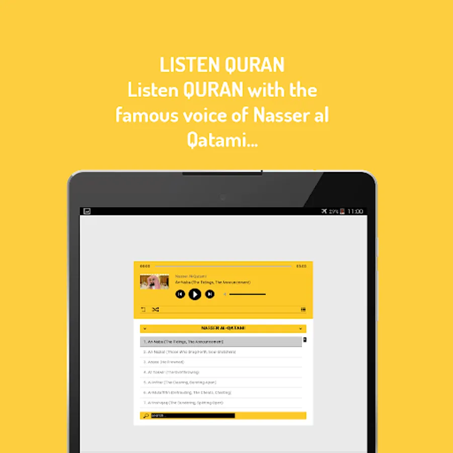 While on the go, do not waste your time, open this app and listen to Quran. Listen 29 and 30th juz by the excellent voice of Nasser al Qatami.