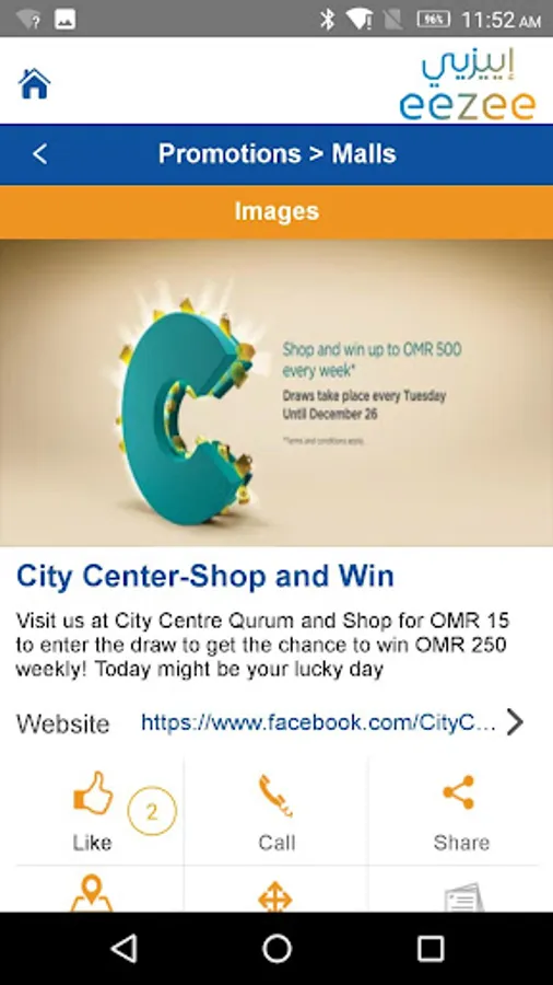 eeZee provides some cool features for any user to find out the promotions running in the vicinity. Users can open map view to see promotions, drive through the outlet directly, call the outlets directly.