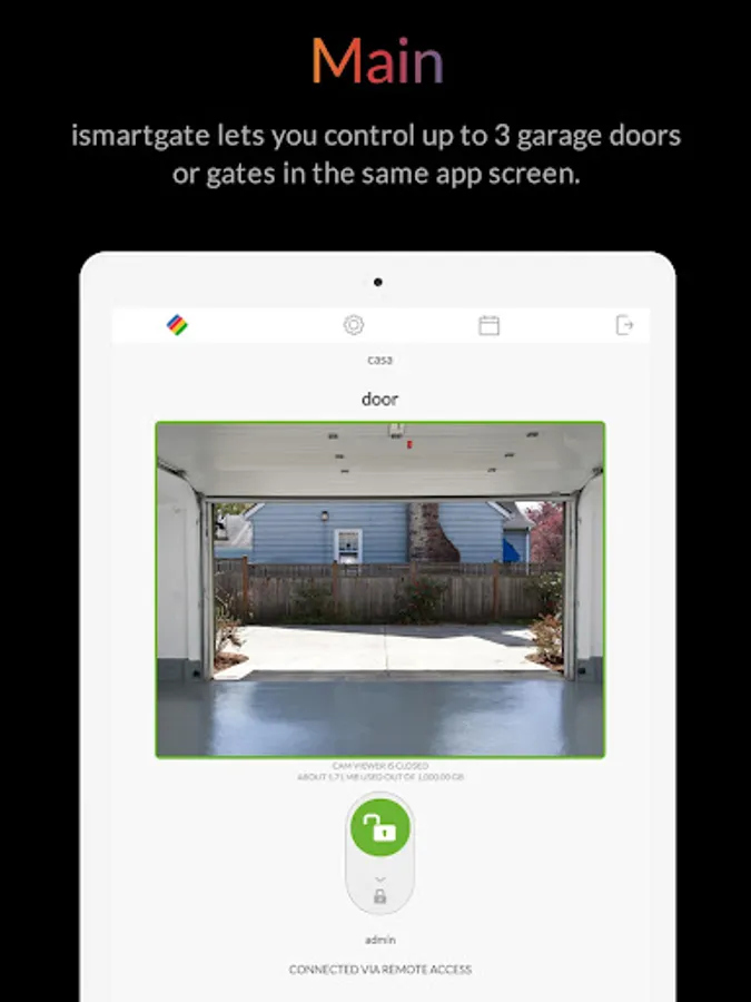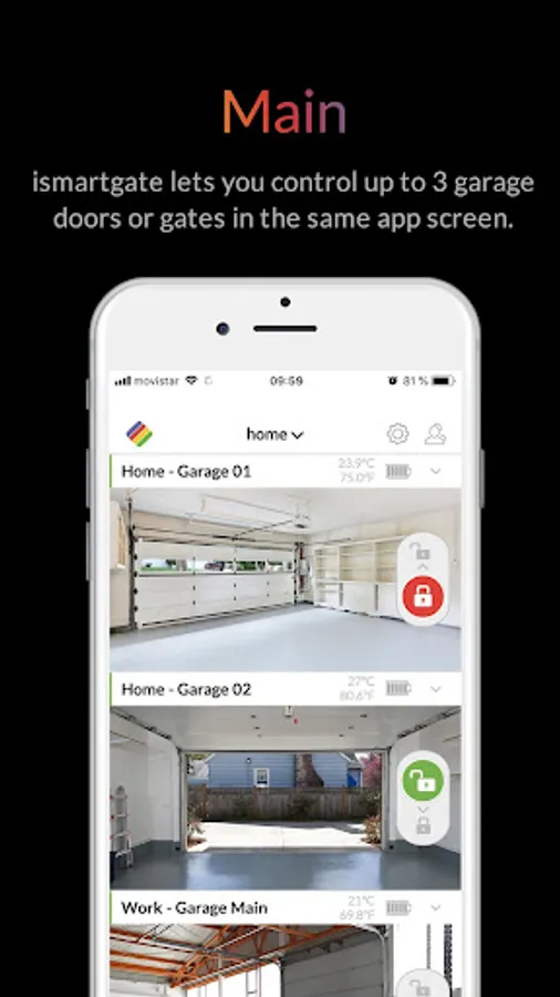 •This APP (when used in conjunction with the iSmartgate device) will open up to 3 garage doors