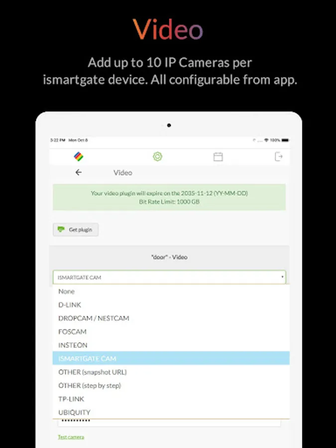•Real Time Video (no camera included in the iSmartgate standard pack)