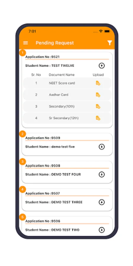 2. Academic Data (Scanned copy of X, XII Marksheet, NEET score).