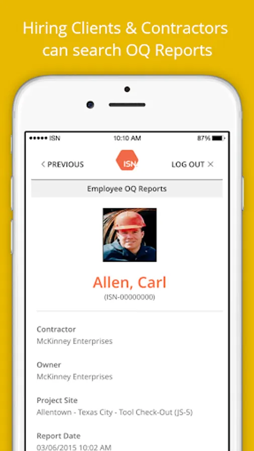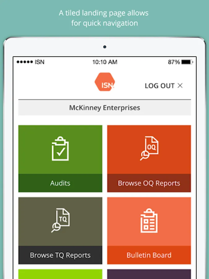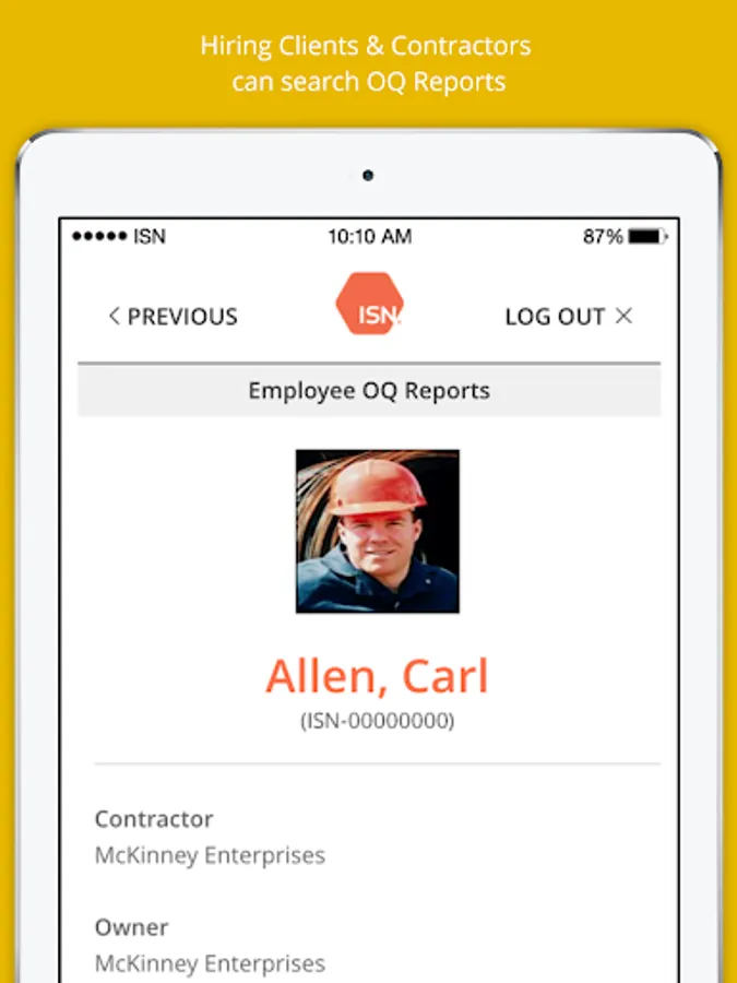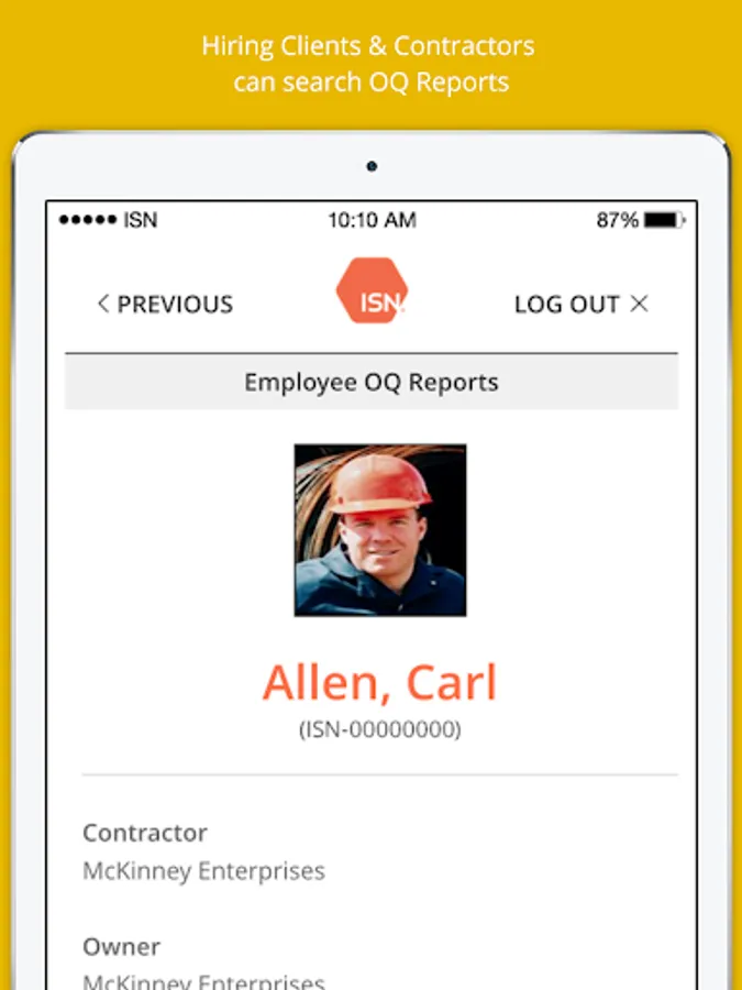ISN’s mobile app provides customers access to its online contractor management platform, ISNetworld, via smartphone and tablets, anywhere an internet connection is available. Hiring Clients can confirm a contractor’s compliance, add evaluation reports and access OQ and TQ reports via their mobile device. Contractors can view their scorecard and requirements by Hiring Client, provide their employee ID and barcode for scanning as well as read important bulletins and messages from their clients within the app.