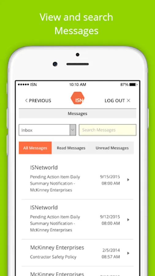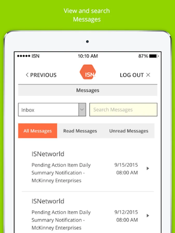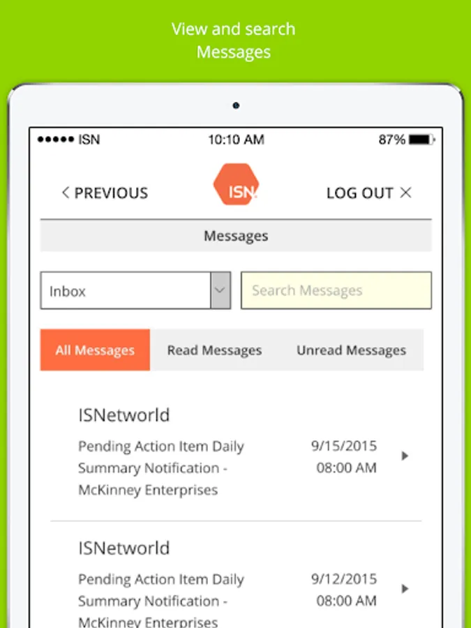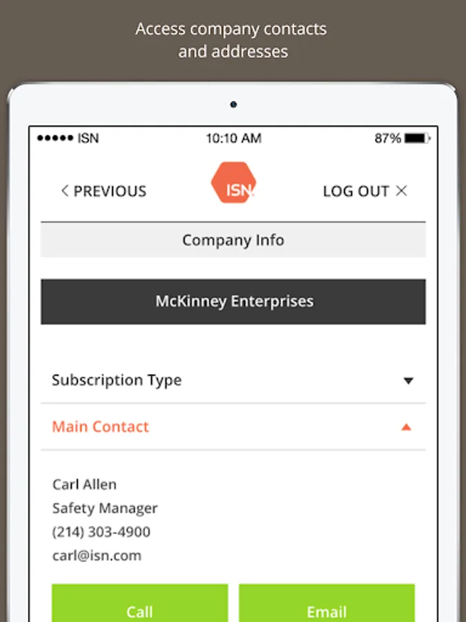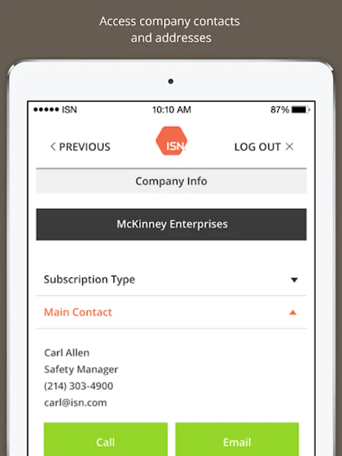 This mobile application maintains the same strict security measures of the desktop version of ISNetworld. This app is available for actively subscribed ISNetworld members.