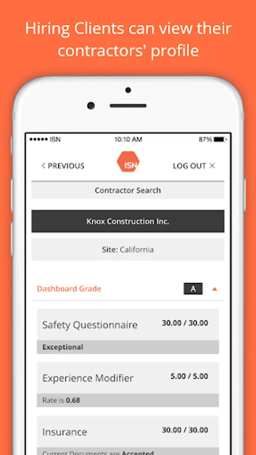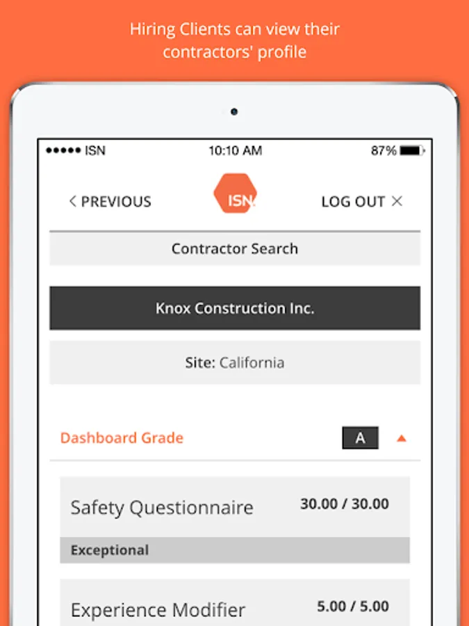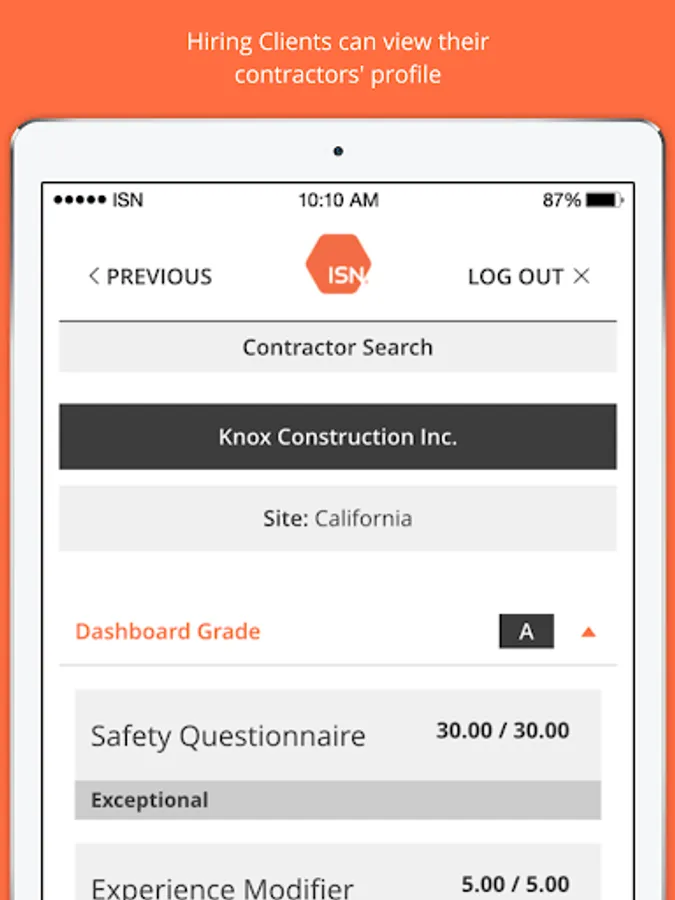 • Hiring Clients can search for contractors and view their company profile and scorecard