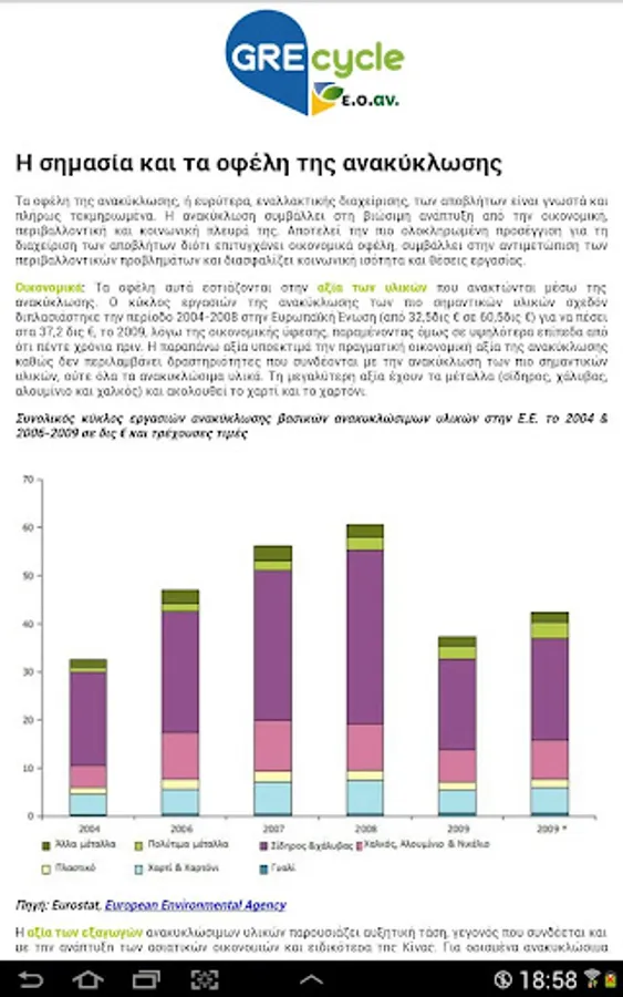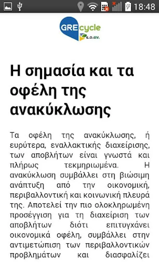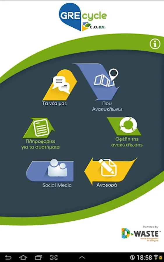 To GRE - cycle is a new specialized platform of Greek Recycling Organisation (EO) in collaboration with the D-Waste, which allows citizens to be informed immediately, easily and responsibly for specific recycling issues.