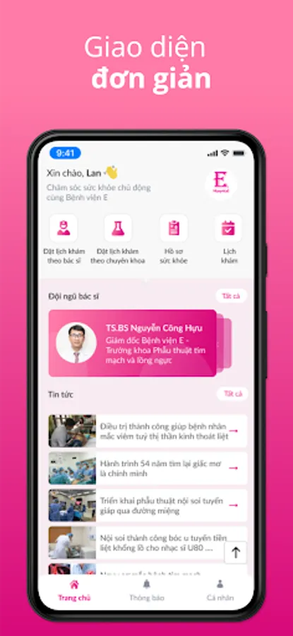 E Hospital application helps users to proactively book an appointment at E Hospital - Address: 89 Tran Cung - Nghia Tan - Cau Giay - Hanoi. When booking an appointment, users will be given priority when they come to a medical facility for medical examination. Main features of the application: