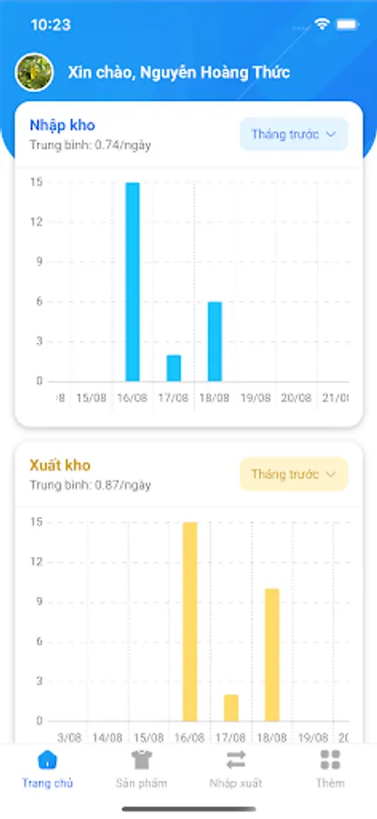 - Report the number of products out of stock, the number of products in stock by day, by week, by month or by optional time range; statistics on the rate of import and export of each specific product.