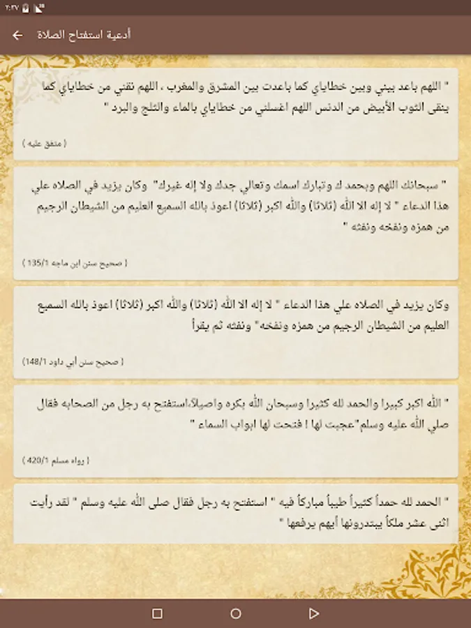يحتوي البرنامج على أكثر من 80 دعاء و ذكر و حديث مقسمة على 30 فصل و موقف تكون معك دائما على جهازك أينما كنت. من أمثلة ذلك: