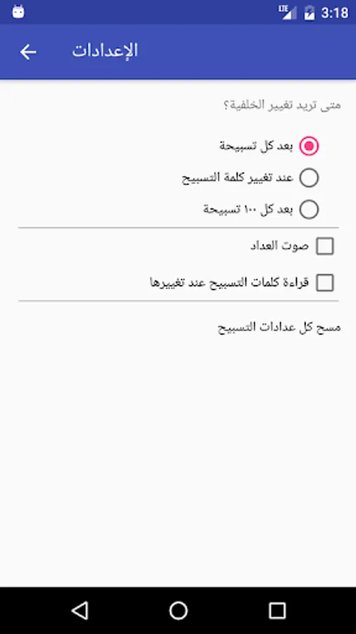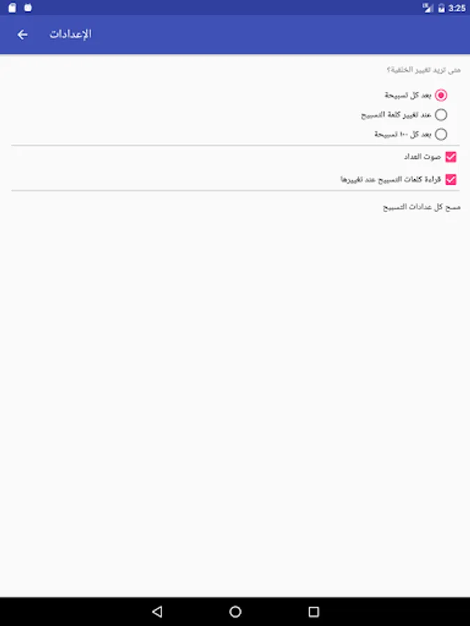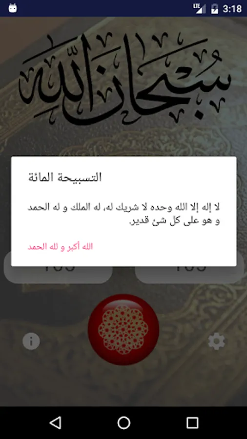 ٣- عند إتمام 99 تسبيحة تقوم السبحة الإلكترونية بإعلامك و تذكيرك بالدعاء لإتمام التسبيحة رقم مائة.
