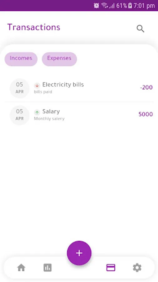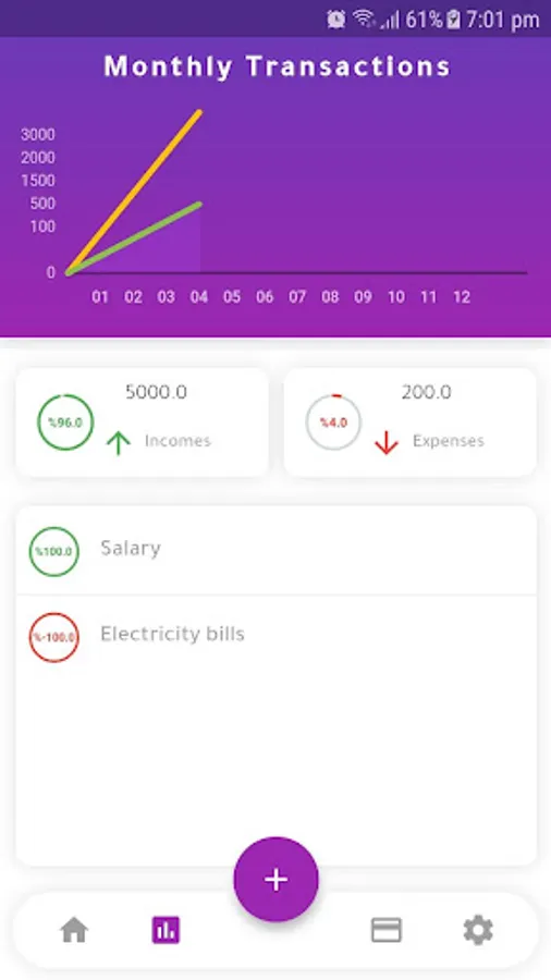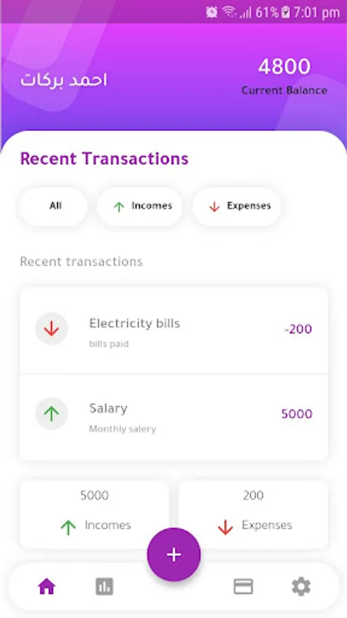 The Application design for you to manage you incomes and expenses in an easy and optimized way, it allows you to take good decision in the right way and time, not only that also it shows you the statistics with real percent for every category of income and expense