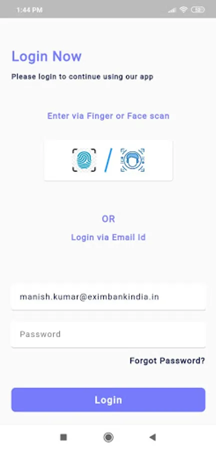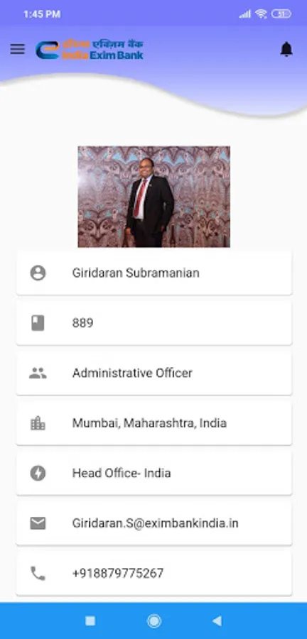 EXIMINDIA Staff Directory is user friendly custom App specifically designed for employee of EXIM BANK OF INDIA App will serve the purpose of a concise one stop reference for contact details of respective branch employees, such as official phone numbers and email id, fax numbers and group email id’s, residential addresses, etc. The App gives an office-wise listing of the employees, as well as the designation & department / group information. He App is well secured through a login portal with unique password making the information secure and safe. The Staff Directory App is a significant step by the Bank in implementing the digitalisation of various Bank’s publications and allowing ease of access to information to its customers. Every customer is provided with UserID and password, when they open an account in the bank, the same can be used to login in the app.