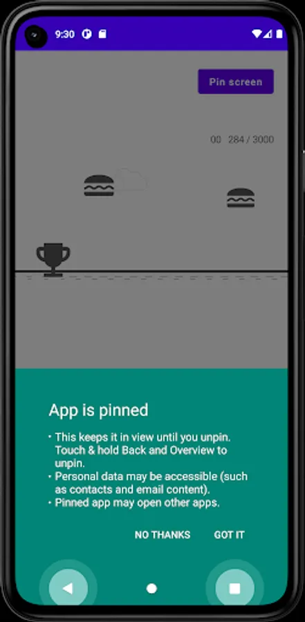 Simple game with pin screen support - to keep the game in view until you unpin it.