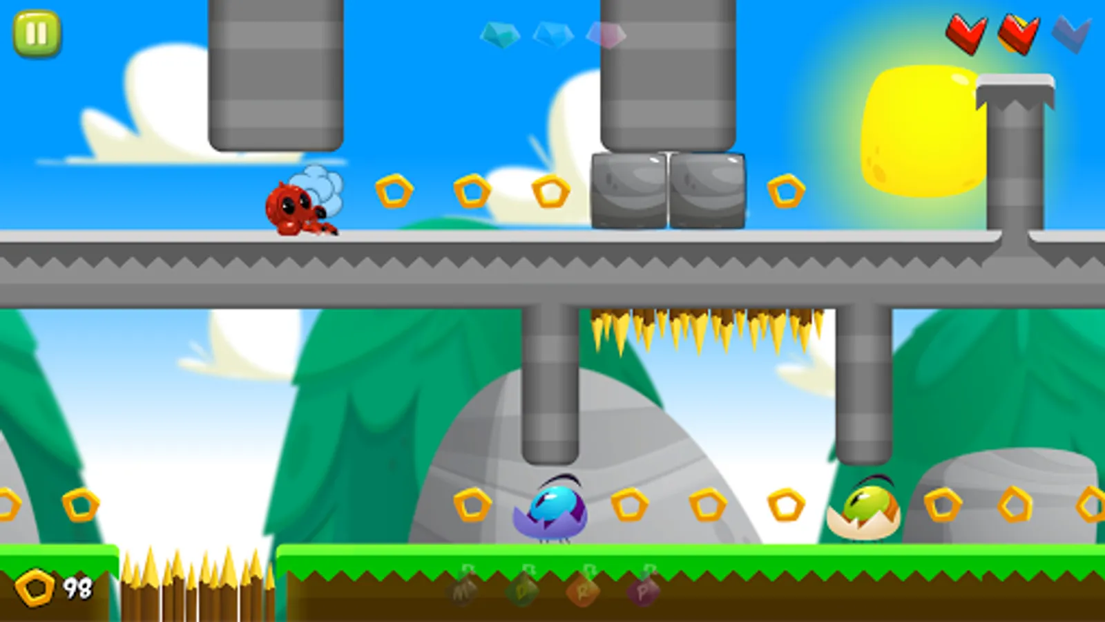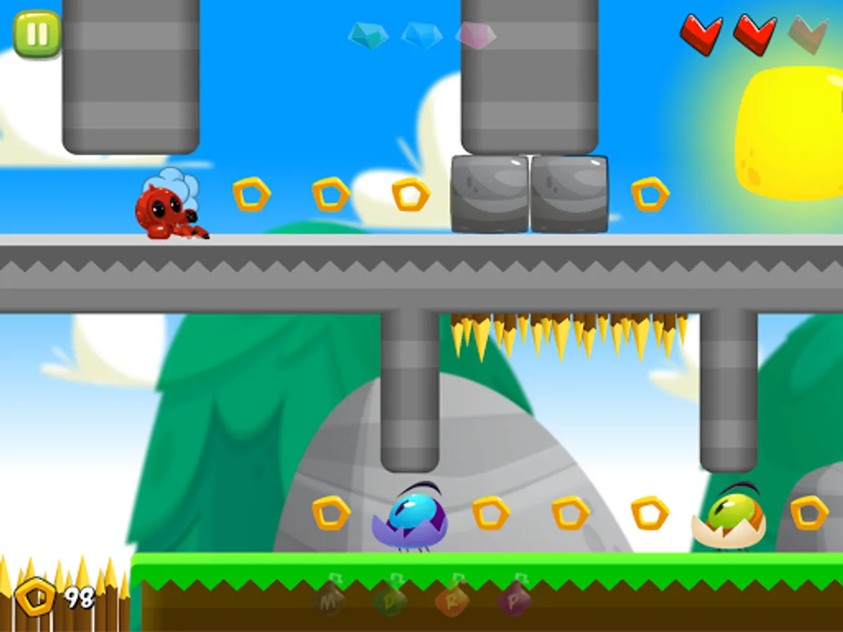 Run Run Robot is a classic endless runner! Guide the Robot to safety as he jumps, dashes, and rolls through 24 challenging levels! Collect the three precious gems on each level while avoiding all manner of hazards such as lava, spikes, and bottomless pits! Dash and bash the ground enemies who get in the Robot’s way, and bounce on flying enemies to reach higher platforms! Grab the power-ups to temporarily boost the Robot’s abilities, and collect as many coins as you can muster for extra kudos!