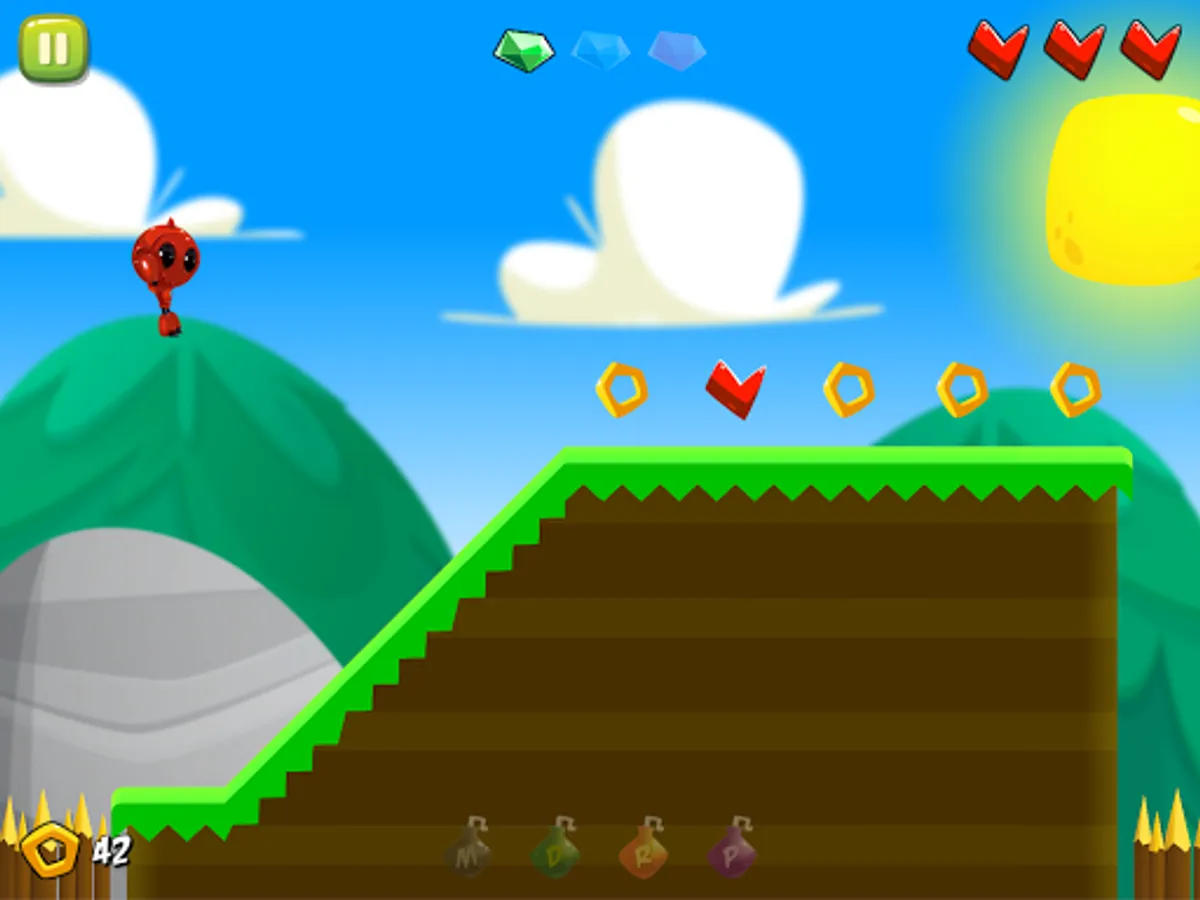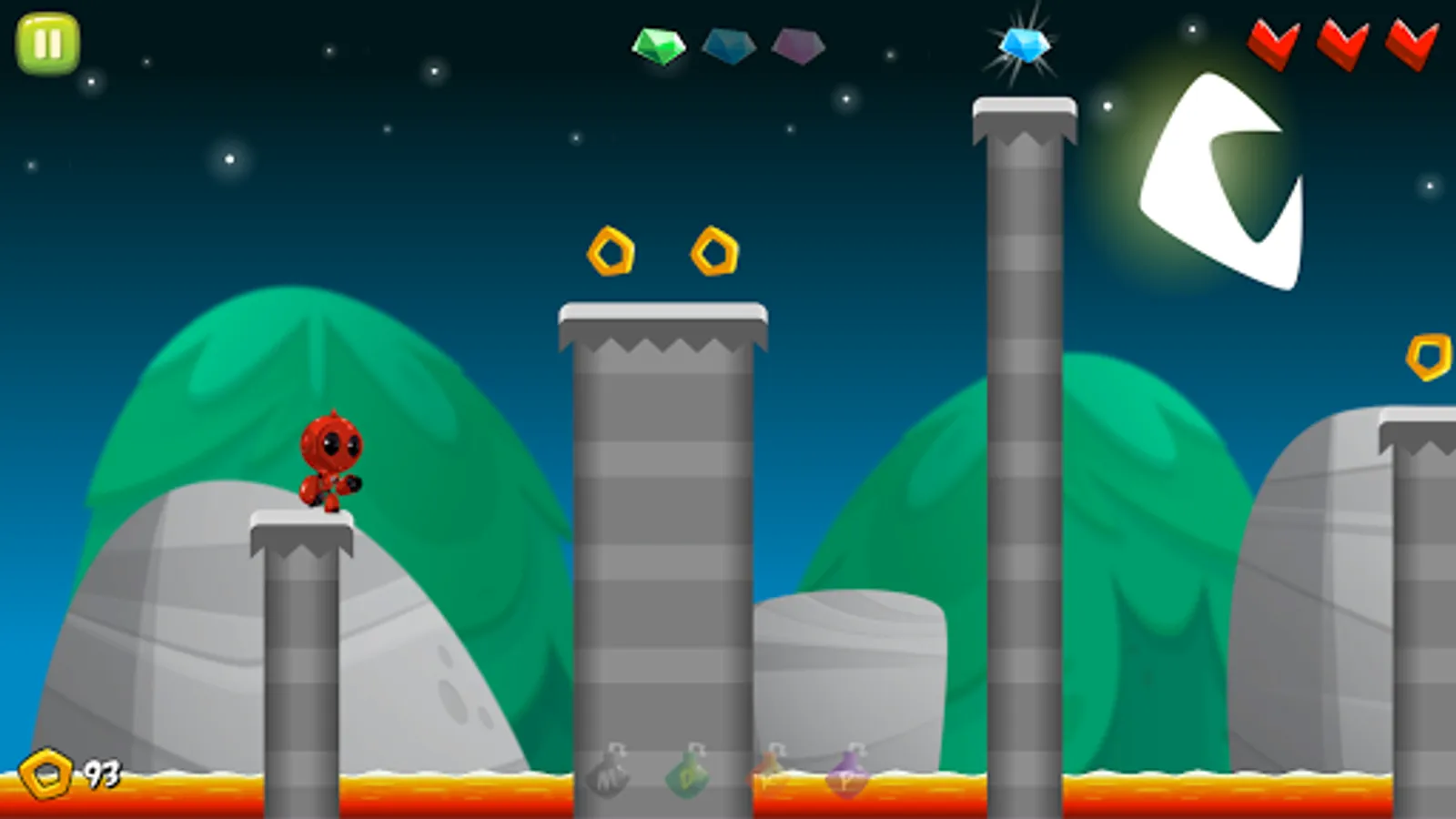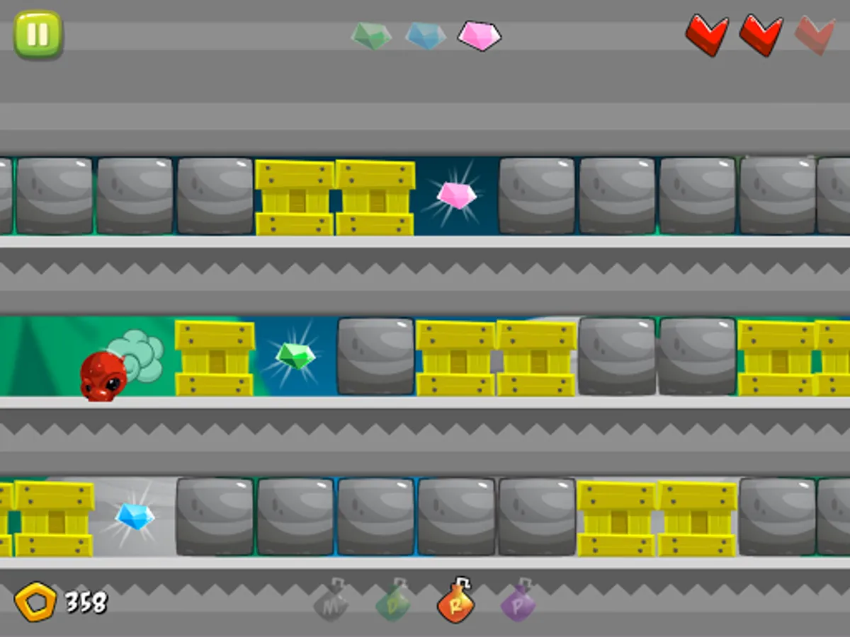 Run Run Robot is deceptively easy to play! Tap the right side of the screen to jump, and tap the left side of the screen to dash. Time your jumps carefully to navigate the precariously-placed platforms, and use the dash to smash through bashable crates, rocks, and enemies. Collect all three gems for a 3-star rating, and grab the hearts and power-ups along the way to boost your Robot’s abilities!