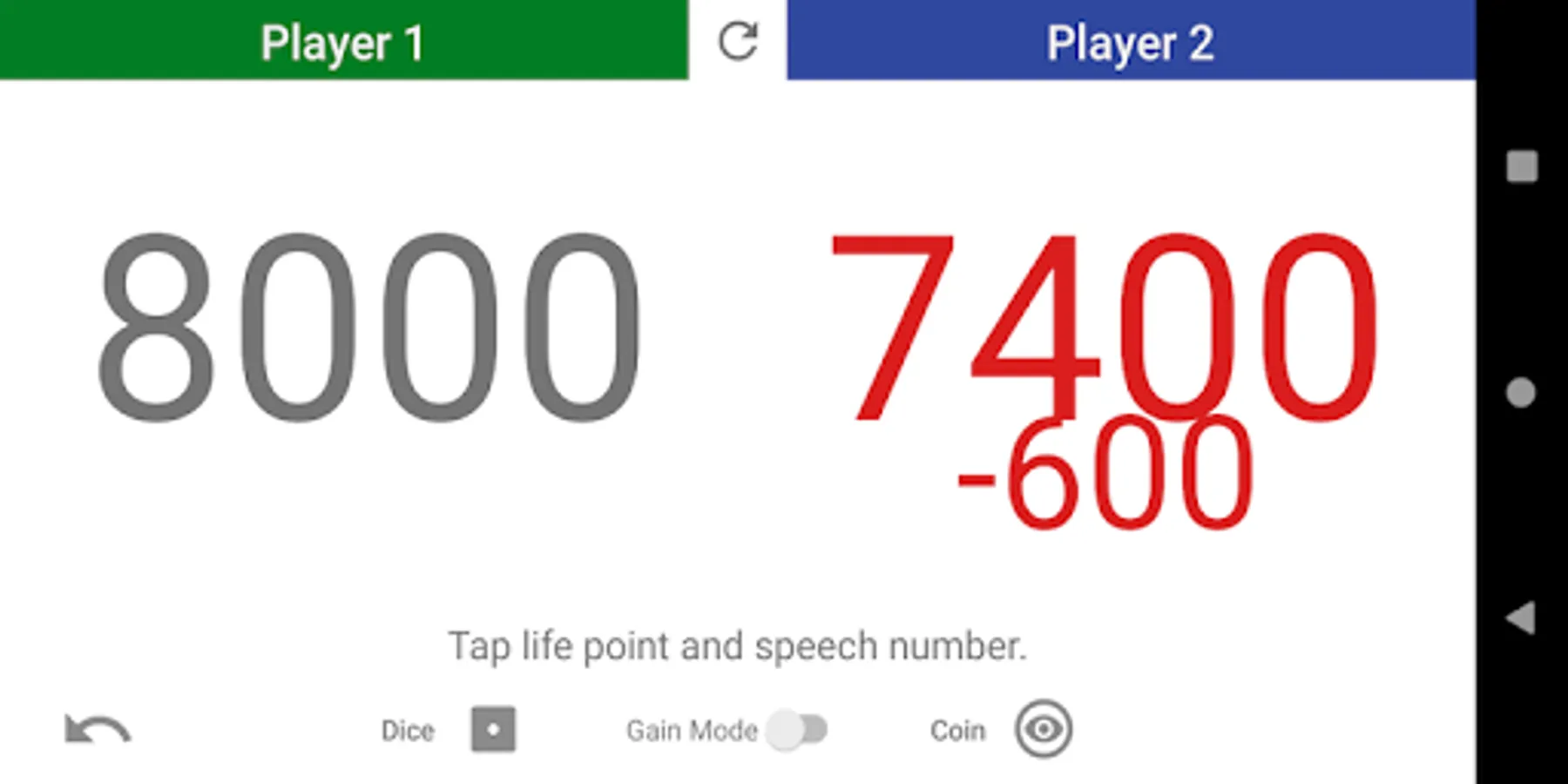 1. Tap life point of a player.