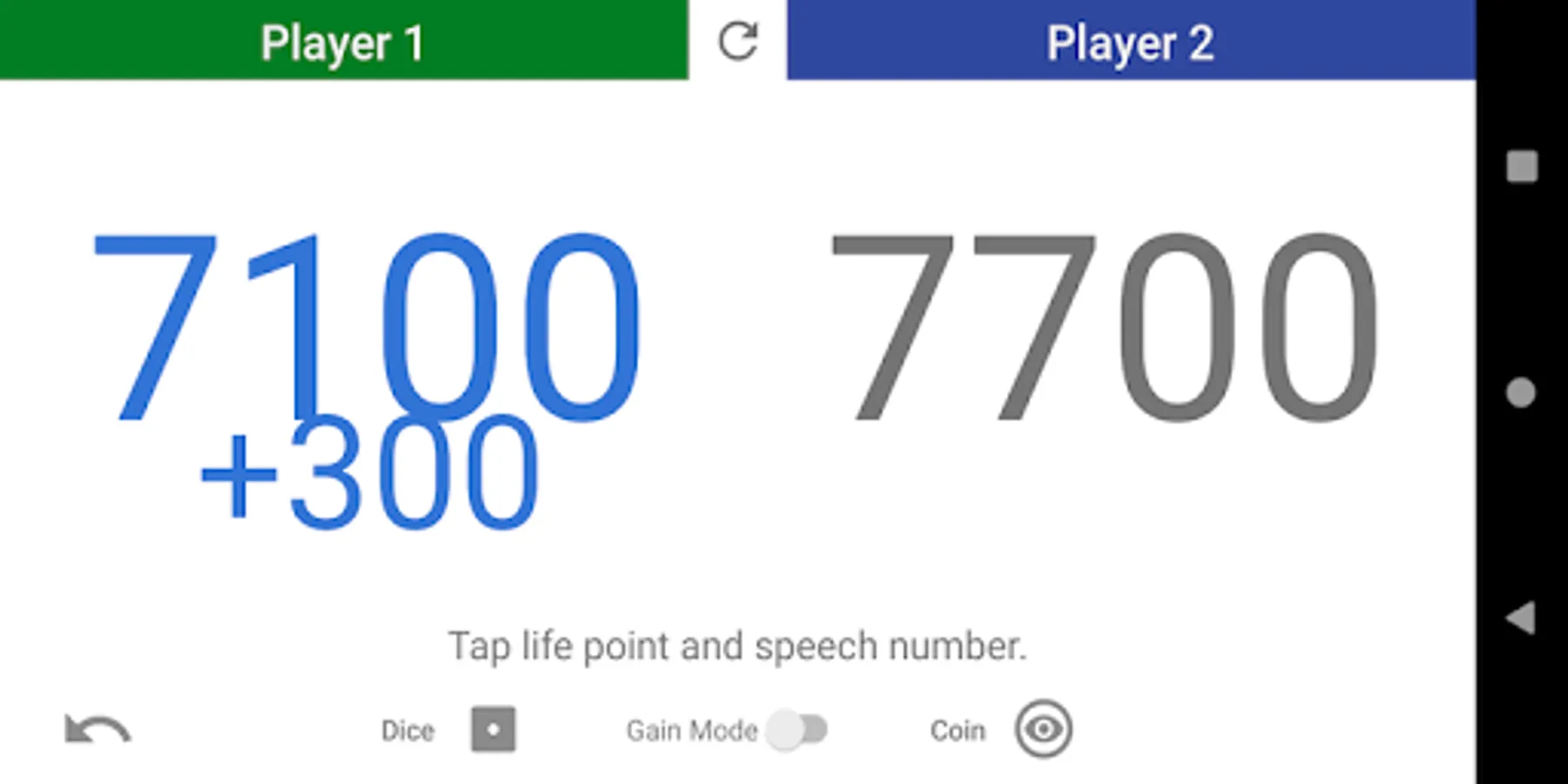4. If you want to recover, press the gain mode button and then tap a life point.