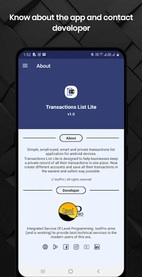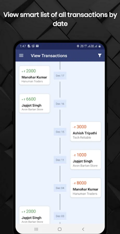Transactions List Lite is designed to help businesses keep a private record of all their transactions in one place. Now create different accounts and save all their transactions in the easiest and safest way possible.