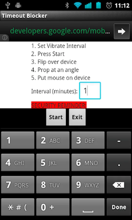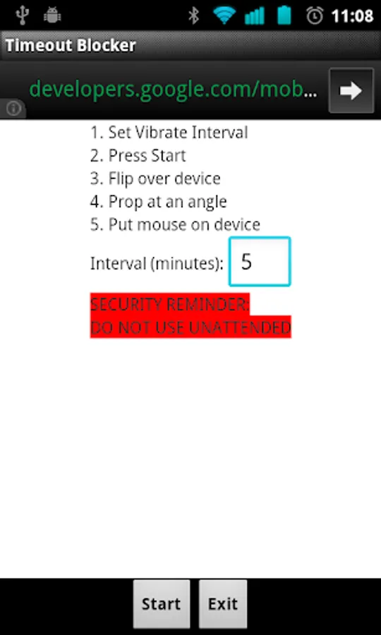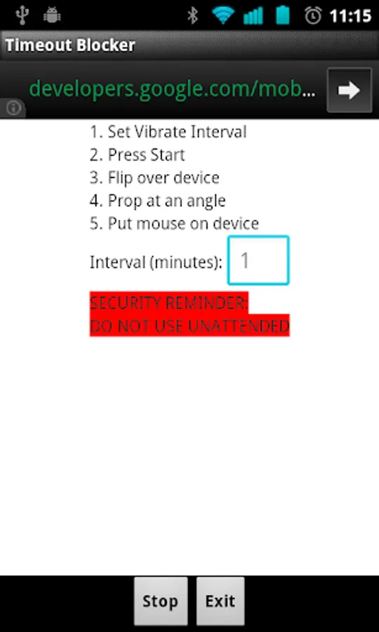 1. Make sure the way you prop your device up is in a safe position where the periodic vibration will not cause it to fall off of a table or otherwise drop to its doom. Isomer Programming LLC is not responsible for physical damage to your device or other property as a result of using this application.