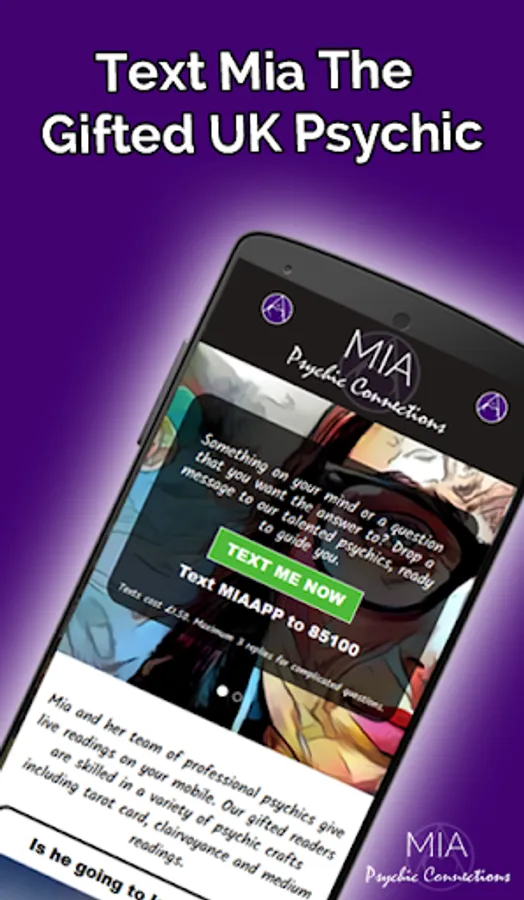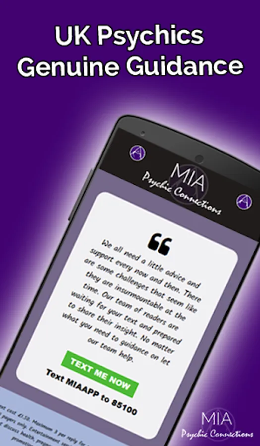 Confidential trusted, intuitive advice from our UK based readers. Our app means you have a psychic connection right there when you need it in your pocket. Our psychics respond quickly to your questions about love, money or careers. I can help guide you with the difficult decisions you are facing right now. Featuring readings using Tarot, mediums, clairvoyance, Spirit guides, trance, numerology and horoscopes / astrology. Our gifted readers are ready and waiting to answer you. Genuine, professional, clairvoyant psychics. 18+ only. Our text message based reading gives you a low cost, convenient way to quickly get advice from a psychic.