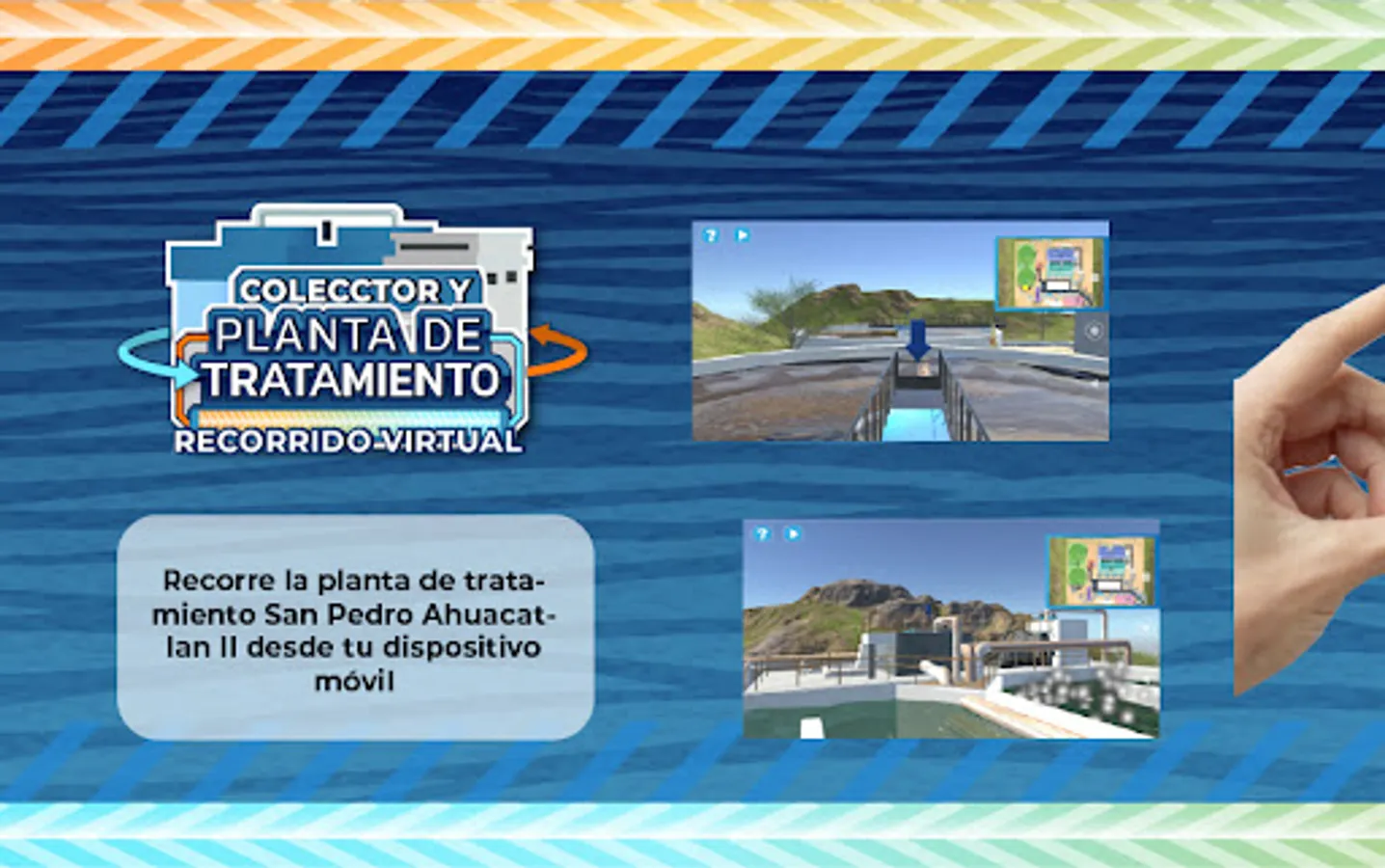 In this App you will be able to learn about the process that takes place within a treatment plant, through a virtual tour.