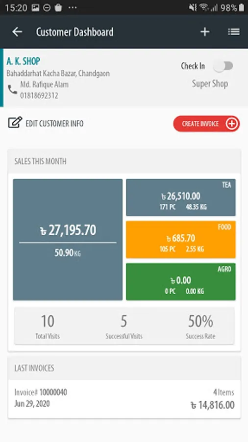 Post your sales customer wise. Now you can create & edit markets or customers & create invoices against them. Necessary reports are in-built to keep track of your day to day sales.