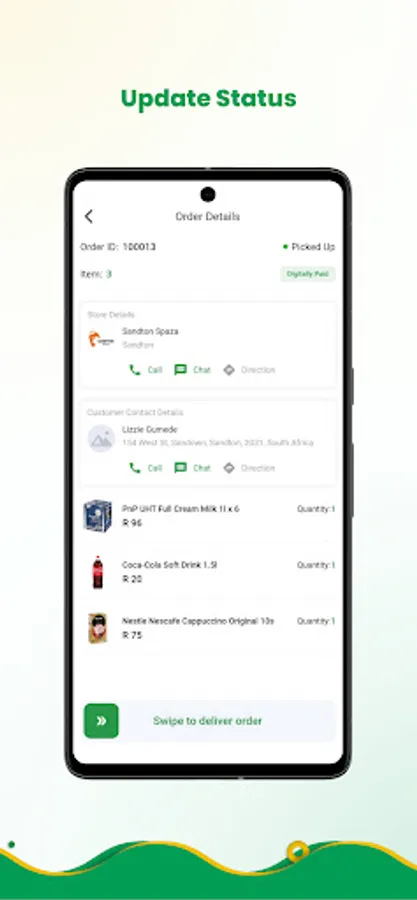 iSpaza Delivery Boy empowers you with tools to provide exceptional customer service. Communicate with customers via in-app messaging, keeping them updated on the status of their deliveries and addressing any queries they may have. Your friendly and professional approach will leave a lasting positive impression, contributing to overall customer satisfaction.
