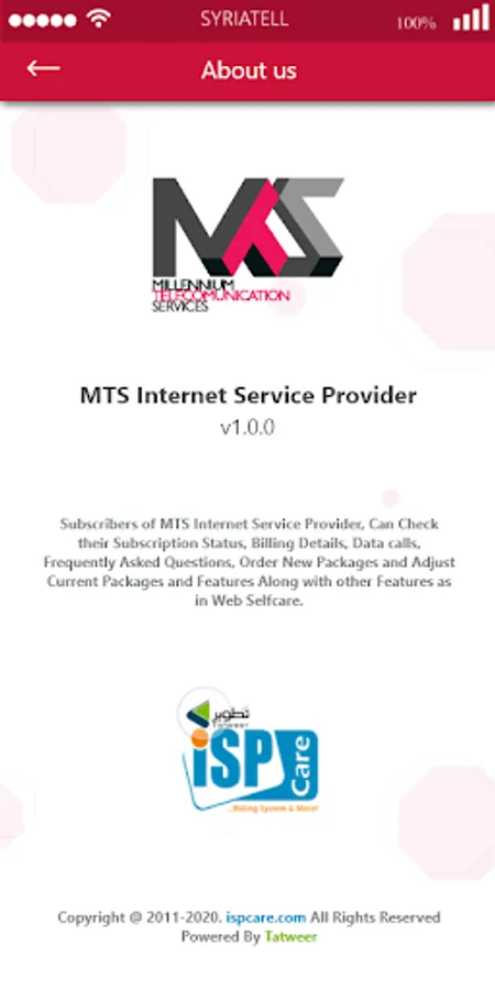 Subscribers of MTS Internet Service Provider, can check their subscription status, billing details, data-calls, Frequently asked questions, order new packages and adjust current packages and features along with other features as in web Selfcare.