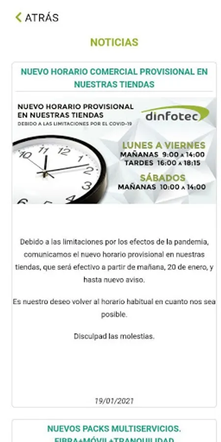 From our App you will be able to carry out a multitude of procedures with Dinfotec from the comfort of your home, such as viewing your active contracts, viewing your consumption, downloading invoices, opening support tickets and many more options.