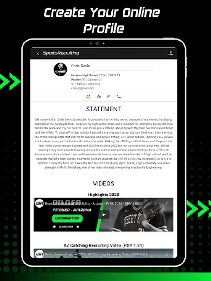 Every High School-Athlete has a vision of playing at the next level, we at iSportsRecruiting want to not only assist your student-athlete with reaching their collegiate aspirations but also assist them with an individualized profile. Building your brand is a must, you have competition, and having the best recruiting online profile you can achieve those goals.