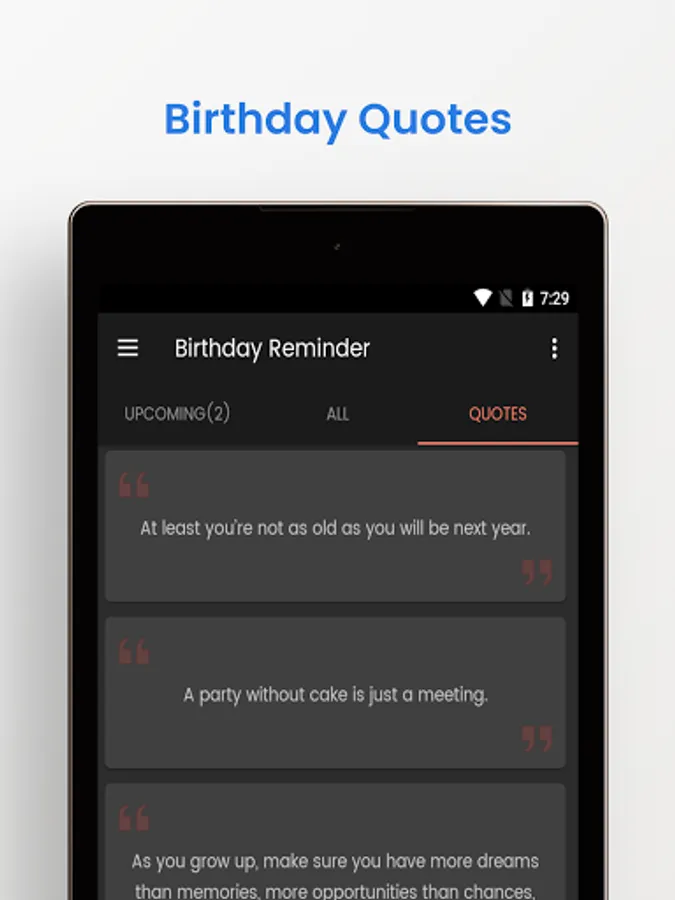 This free Birthday Reminder app reminds you of your friends' and family's birthdays dates. It's simple and we respect your privacy.