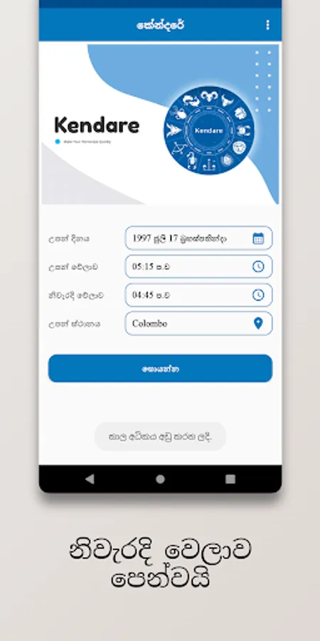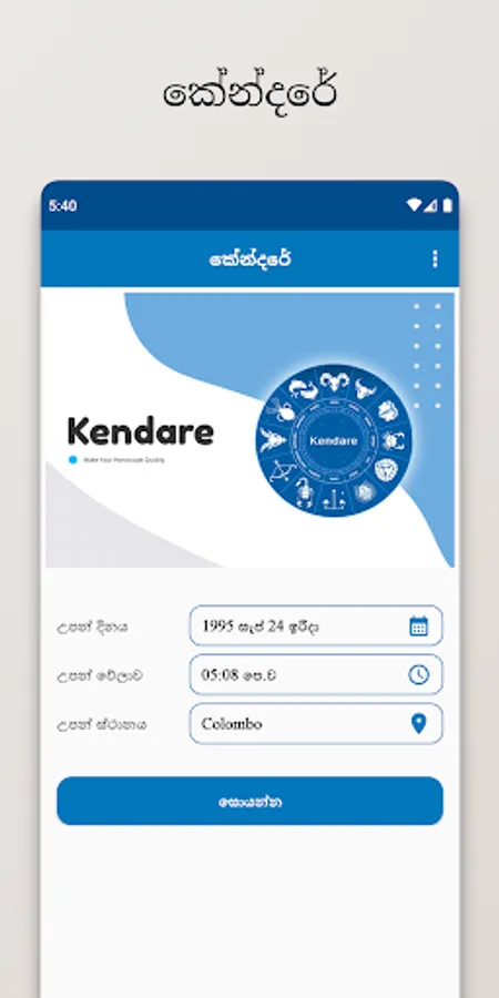 Kendare App finds your Kendaraya or Horoscope accurately. You need to submit your Birth Date, Time, and Place(Hospital). It finds Kendare or Horoscope and more valuable info.