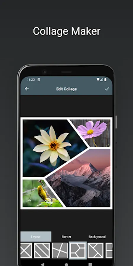 The Collage Maker allows for creative combinations of photos into captivating visual stories with customizable layouts.