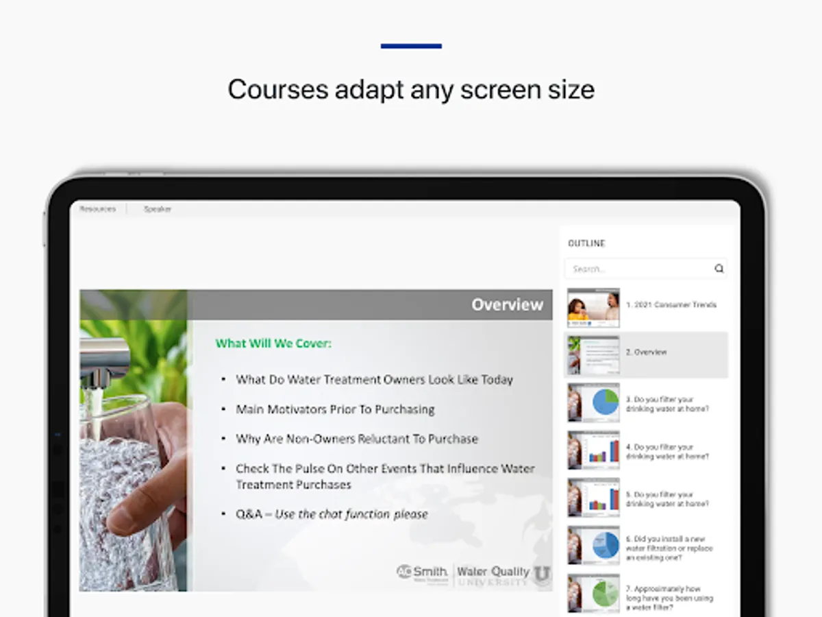 The water treatment industry is an ever-changing place and the family of A. O. Smith Water treatment manufacturers understand the value of educating our customers and their teams. Register today for product specific training, the science behind water, sales and marketing strategies, even business management tools. We proudly support our Hague Quality Water, Water-Right, WaterCare, Evolve, Master Water, A. O. Smith Pro, and A. O. Smith Specialized Water Solutions customers.